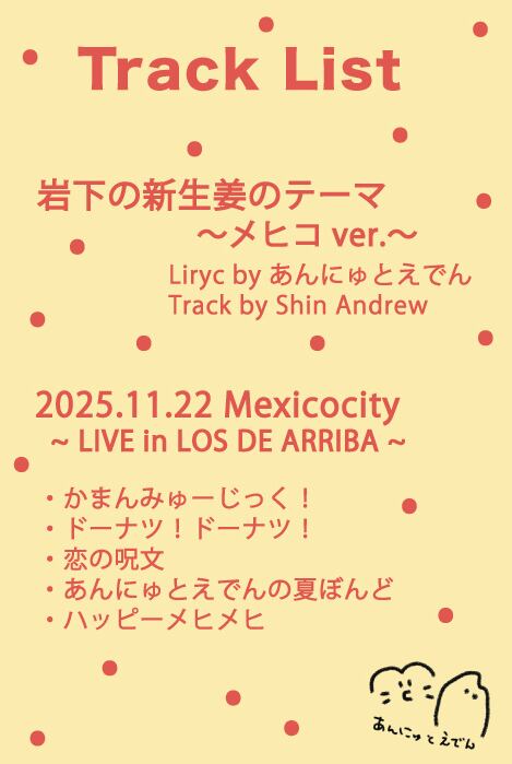 MÉXICOで披露した『岩下の新生姜のテーマ〜メヒコver.〜』に加え、臨場感たっぷりのMéxicocityでのLIVEもまるっと収録。